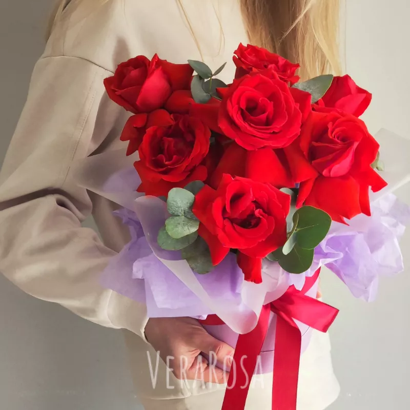 Кустовые розы были органично обрамлены веточками эвкалипта и гипсофилами. Спасибо вашей команде за то, что учли все мои пожелания. Лучшие