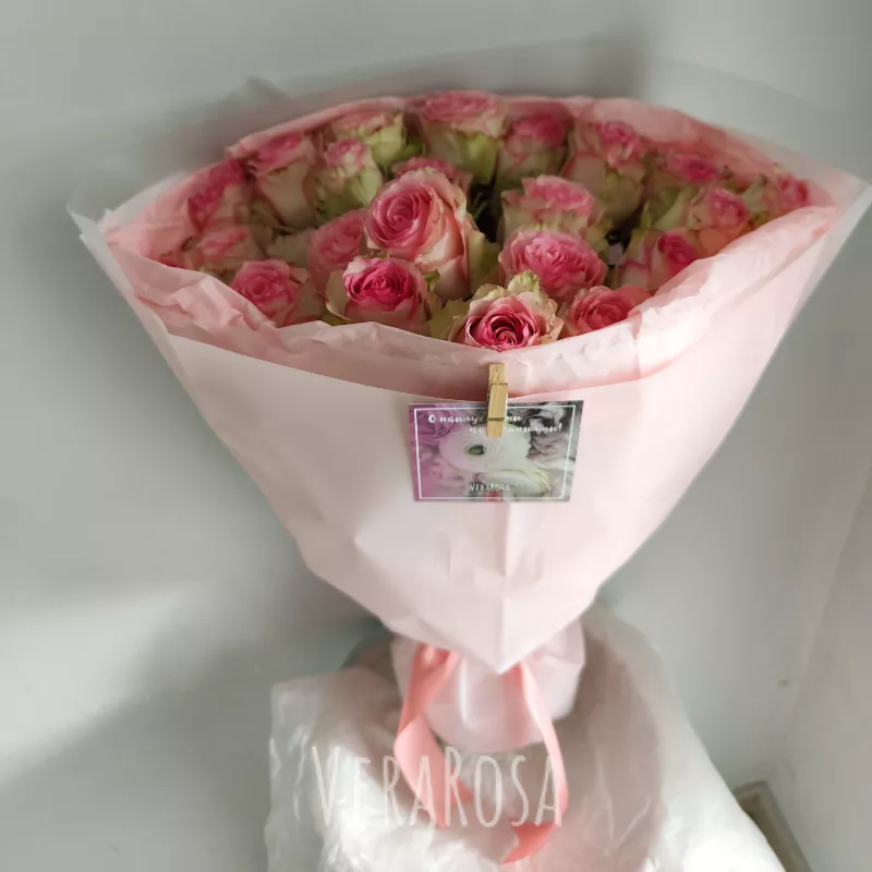 Кустовые розы были органично обрамлены веточками эвкалипта и гипсофилами. Спасибо вашей команде за то, что учли все мои пожелания. Лучшие