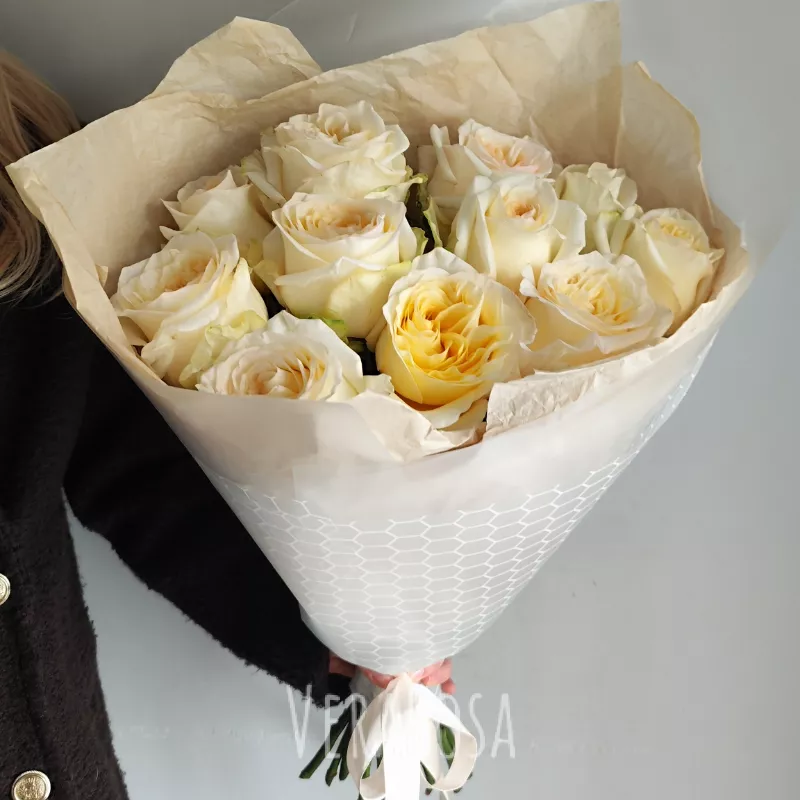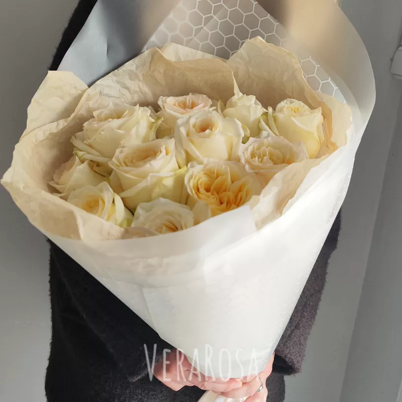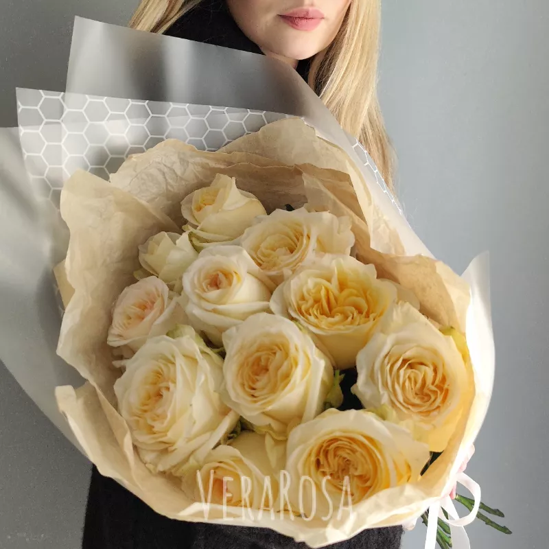 Кустовые розы были органично обрамлены веточками эвкалипта и гипсофилами. Спасибо вашей команде за то, что учли все мои пожелания. Лучшие