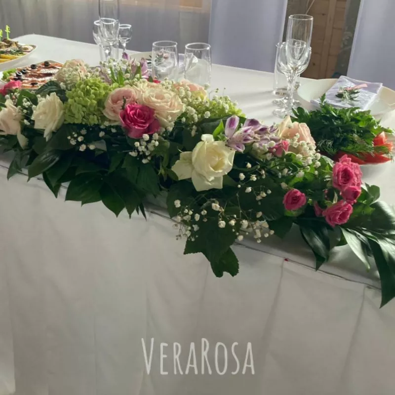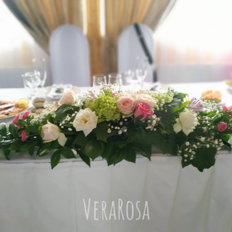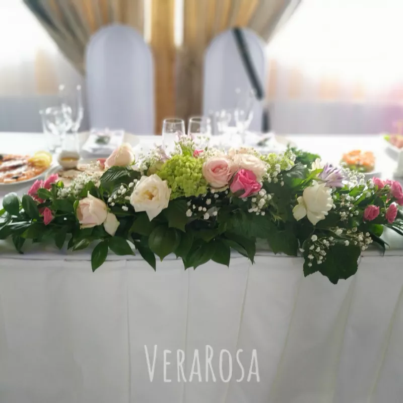 Кустовые розы были органично обрамлены веточками эвкалипта и гипсофилами. Спасибо вашей команде за то, что учли все мои пожелания. Лучшие